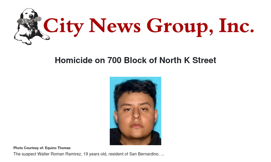 On Thursday, February 24, 2022, San Bernardino Police Department Investigators conducted a traffic stop on the suspect vehicle and arrested Ramirez. Inside the vehicle, investigators located the handgun used in the murder. Ramirez was arrested for murder and was booked into a local jail facility.