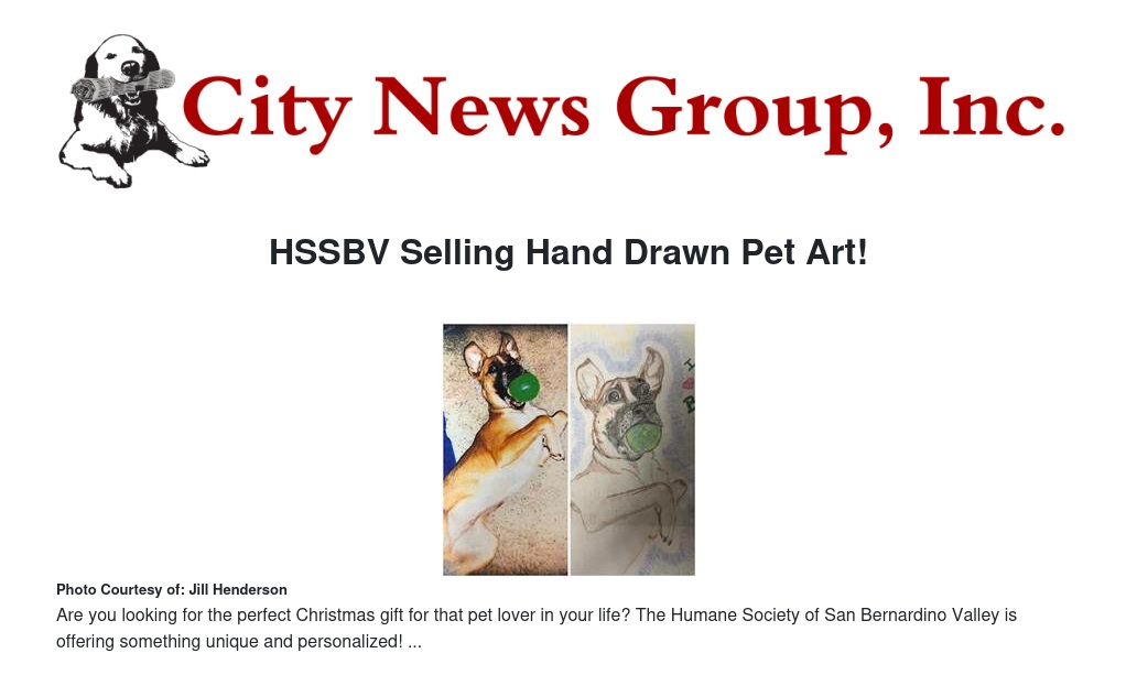The HSSBV is offering hand-drawn pet portraits- the perfect unique holiday gift! Portraits are $10 for a plain white background, $15 for a background/theme of your choice ($5 additional fee per pet if you would like more than one pet in the same photo)!!