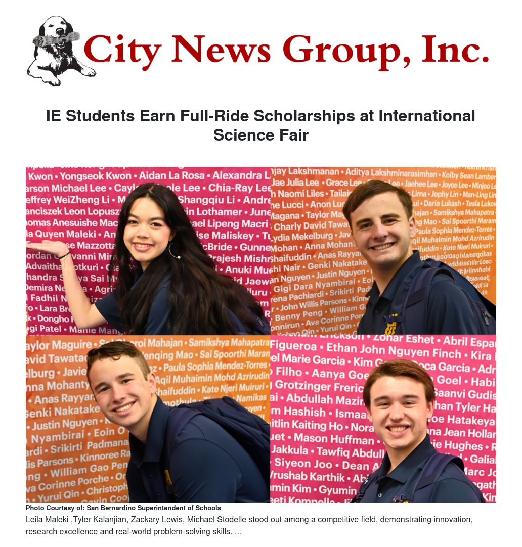 IE Students Earn Full-Ride Scholarships at International Science Fair by Ruby Stephenson - City News Group, Inc.