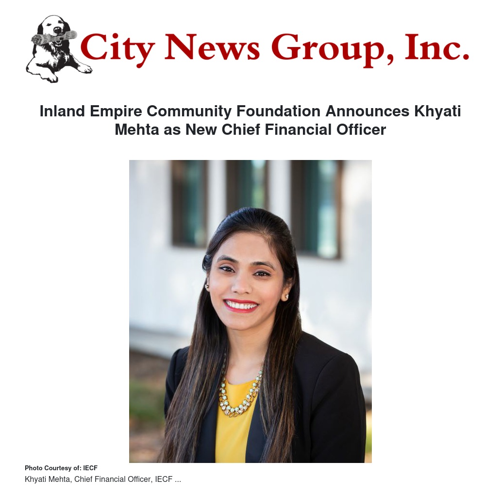 Inland Empire Community Foundation Announces Khyati Mehta as New Chief Financial Officer by Charee Gillins - City News Group, Inc.