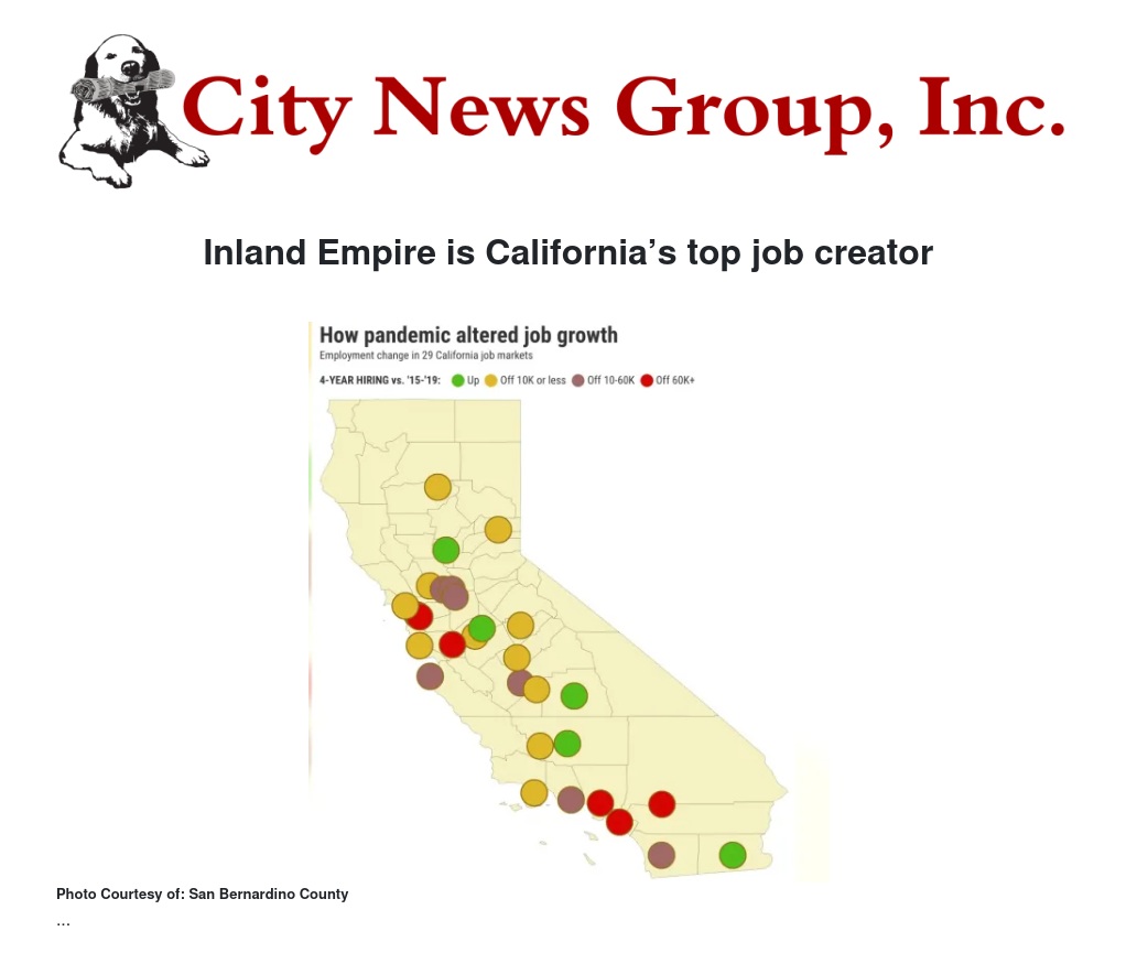 Or look at the outperformance this way. California added 640,300 jobs since 2019 to 18.1 million. So, the Inland Empire created 20% of the state’s new jobs but comprises only 9% of the state’s total employment.