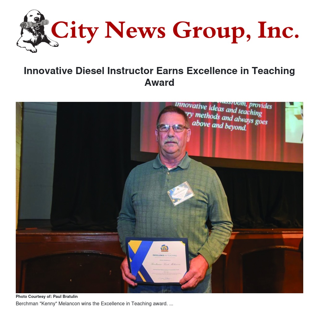 Innovative Diesel Instructor Earns Excellence in Teaching Award by Paul Bratulin - City News Group, Inc.