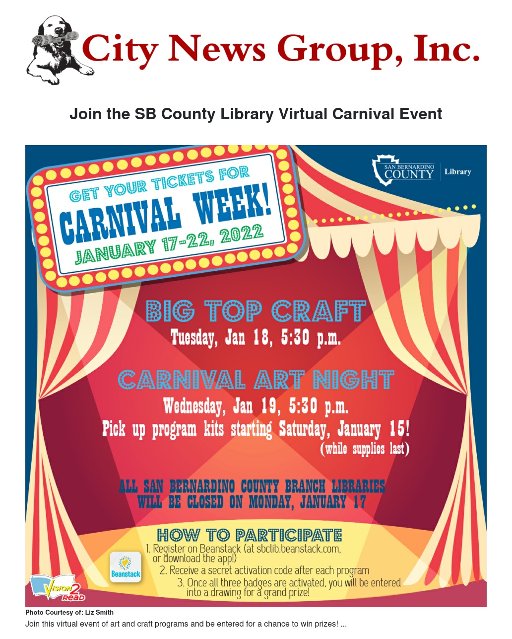 Join the SB County Library Virtual Carnival Event by Liz Smith - City News Group, Inc.