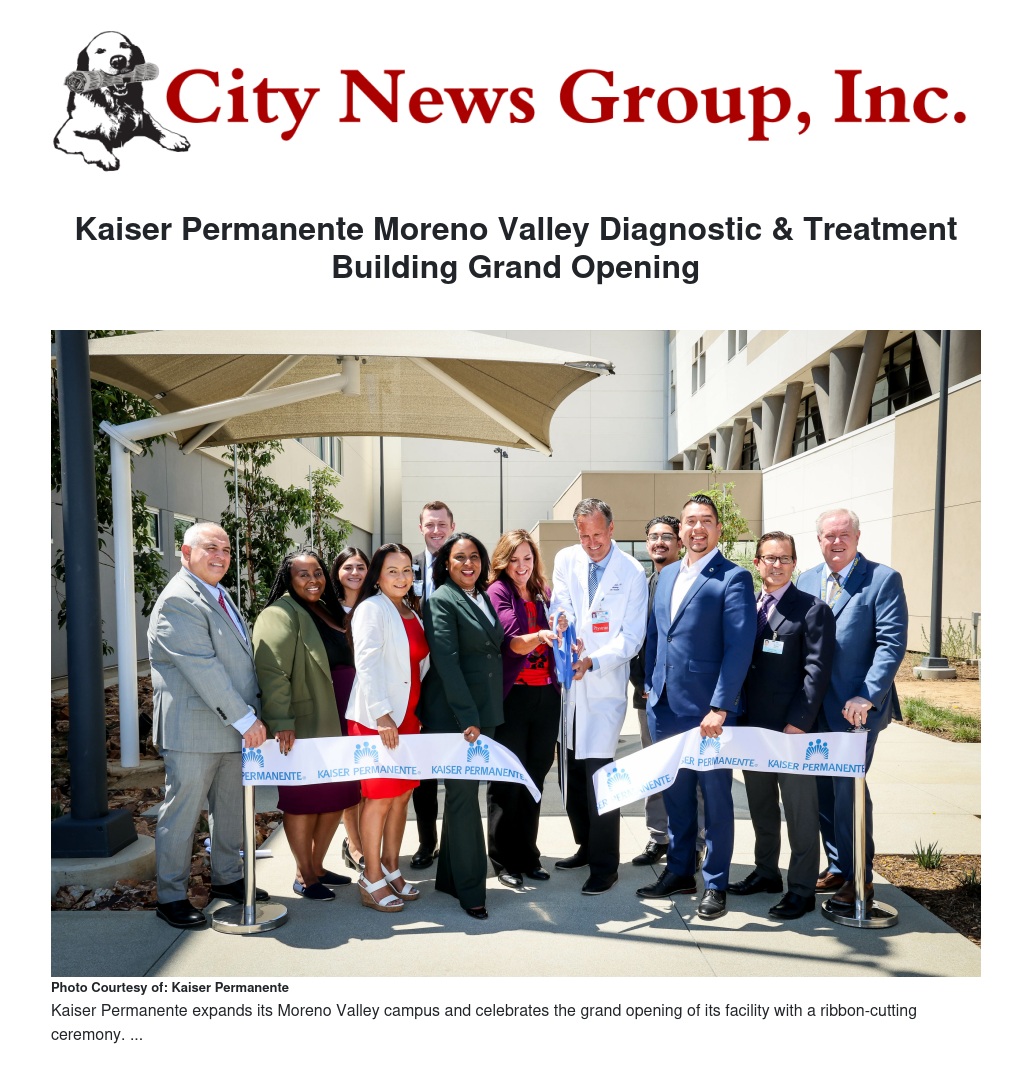 Kaiser Permanente Moreno Valley Medical Center campus is expanding! We celebrated the opening of this new facility with a ribbon-cutting ceremony on Tuesday, June 27. It is a pleasure to be a part of this community and to now have the facility to expand the services offered in Moreno Valley to serve our members on the east side of Riverside County.