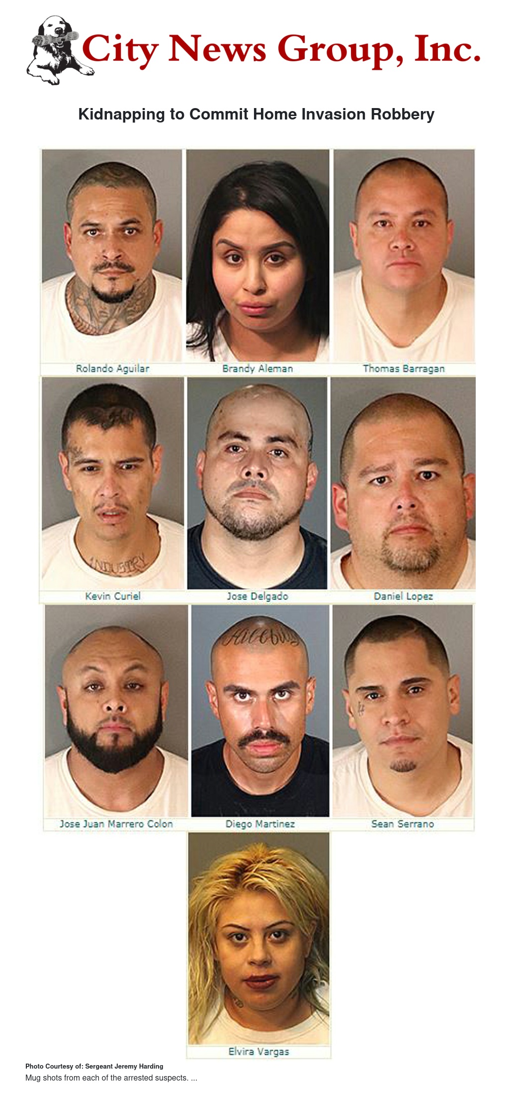The following gang-involved suspects were arrested for kidnapping to commit robbery, conspiracy, weapons, and drug charges:
