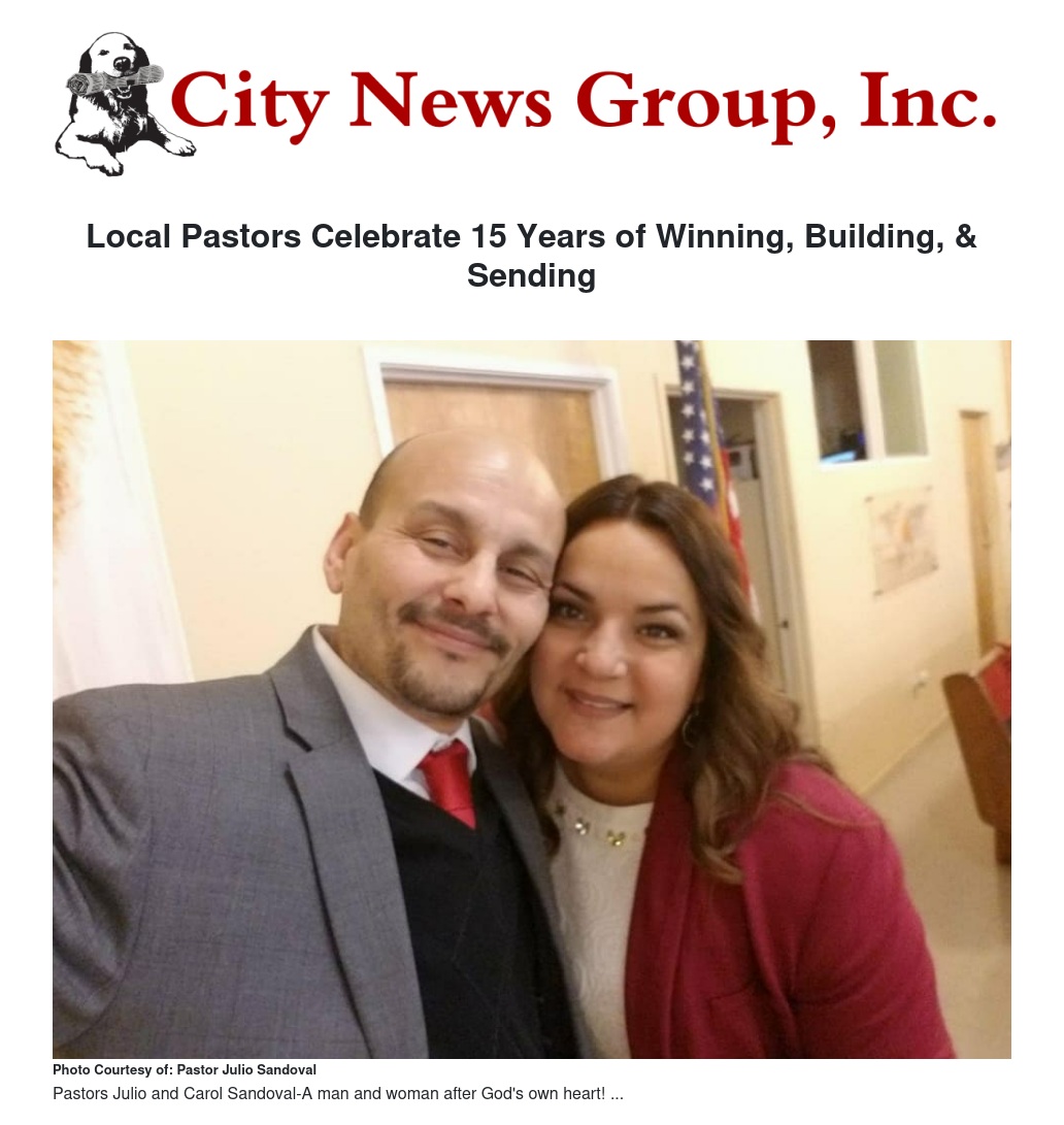 Pastors Julio and Carol Sandoval of Church of Fire in Christ, located in Grand Terrace, are marching into their 15th year of service to God and the community with humility and gratitude. “It hasn’t always been easy, but it has been worth it!” says Julio.