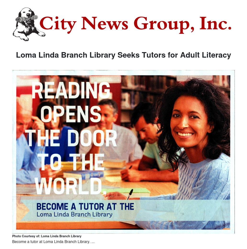 The San Bernardino County Library is seeking tutors to provide adult literacy services to the Loma Linda community. The Adult Literacy Program features individualized English and digital literacy services in one-on-one, confidential, student-centered sessions. The program is intended to equip participants with lifelong learning skills and prepare them for personal, family, career, and community success.