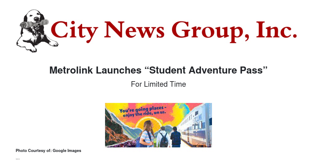 Metrolink Launches “Student Adventure Pass” by Meredith Yeoman, Southern California Regional Rail Authority - City News Group, Inc.