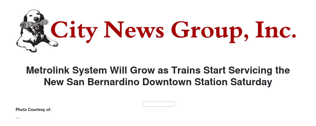 SAN BERNARDINO – Beginning Saturday, Dec. 16, 2017, Metrolink’s San Bernardino and Inland Empire-Orange County lines will be extended one mile from the Santa Fe Depot to the San Bernardino Transit Center (SBTC) in Downtown San Bernardino.