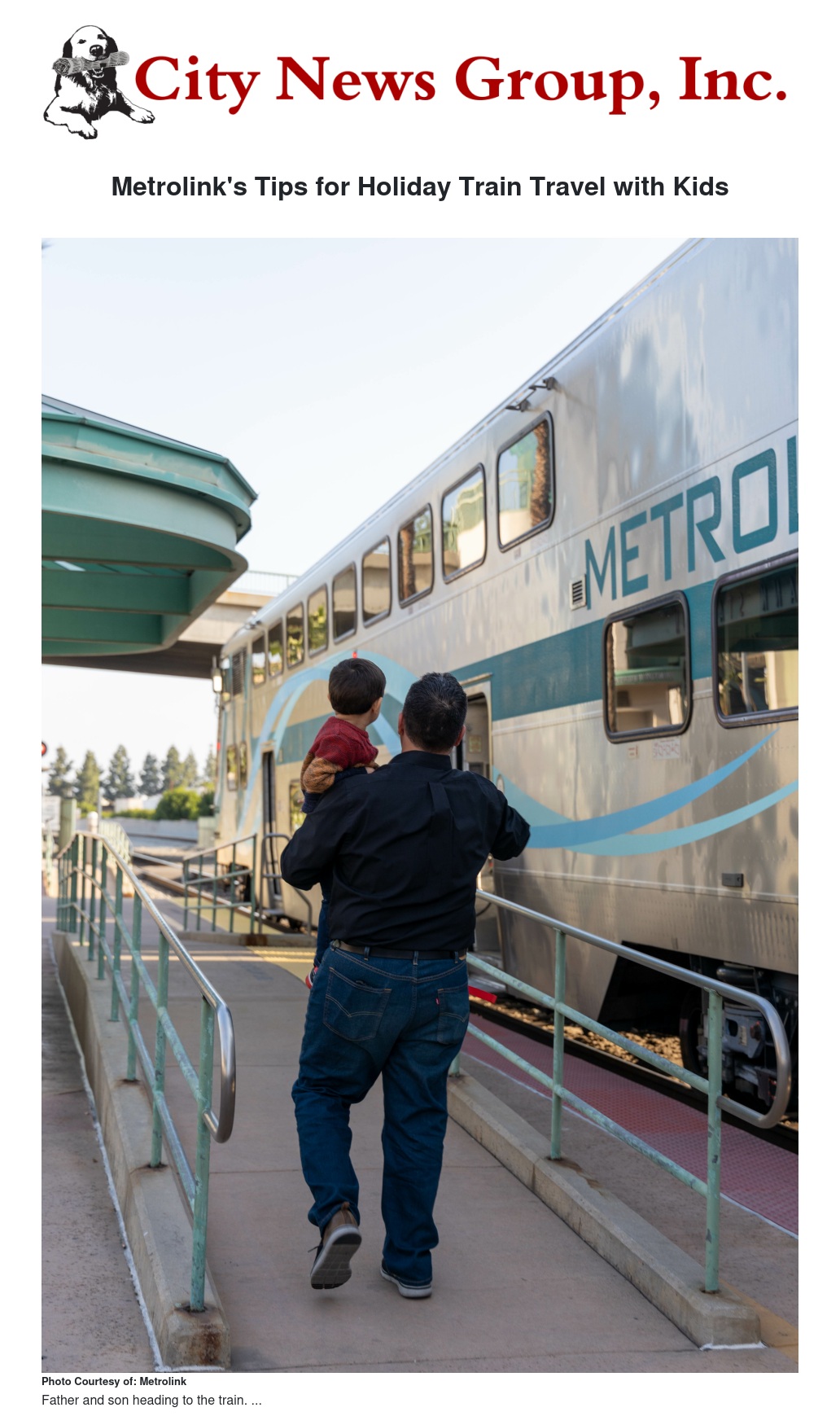 Metrolink's Tips for Holiday Train Travel with Kids by Tracy Smith - City News Group, Inc.