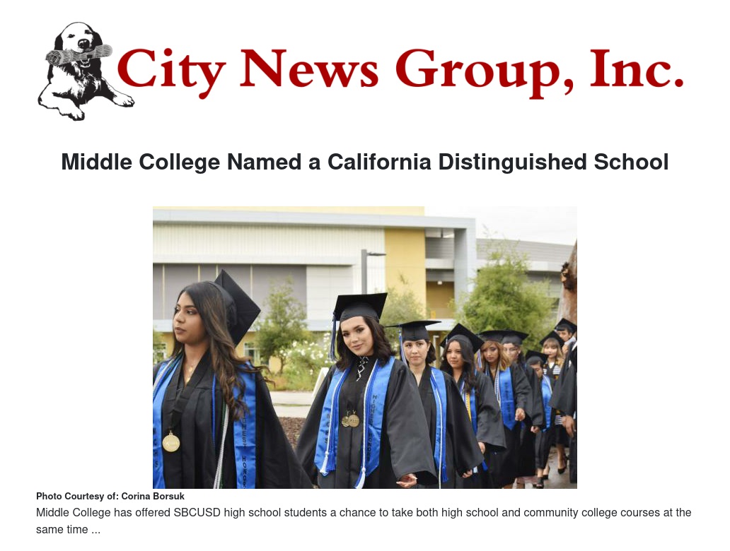Middle College Named a California Distinguished School by Corina Borsuk - City News Group, Inc.