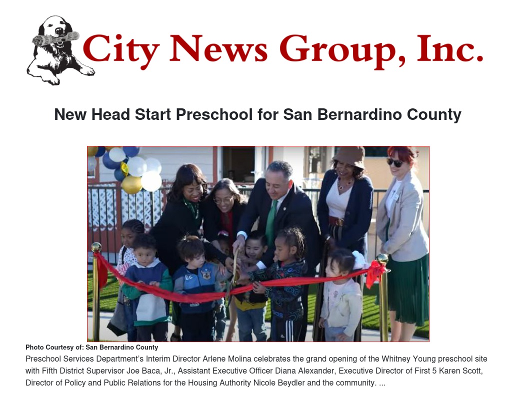 The Preschool Services Department (PSD) recently celebrated the grand opening of the Whitney Young Head Start Preschool, located at 1755 W. Maple St. in San Bernardino.