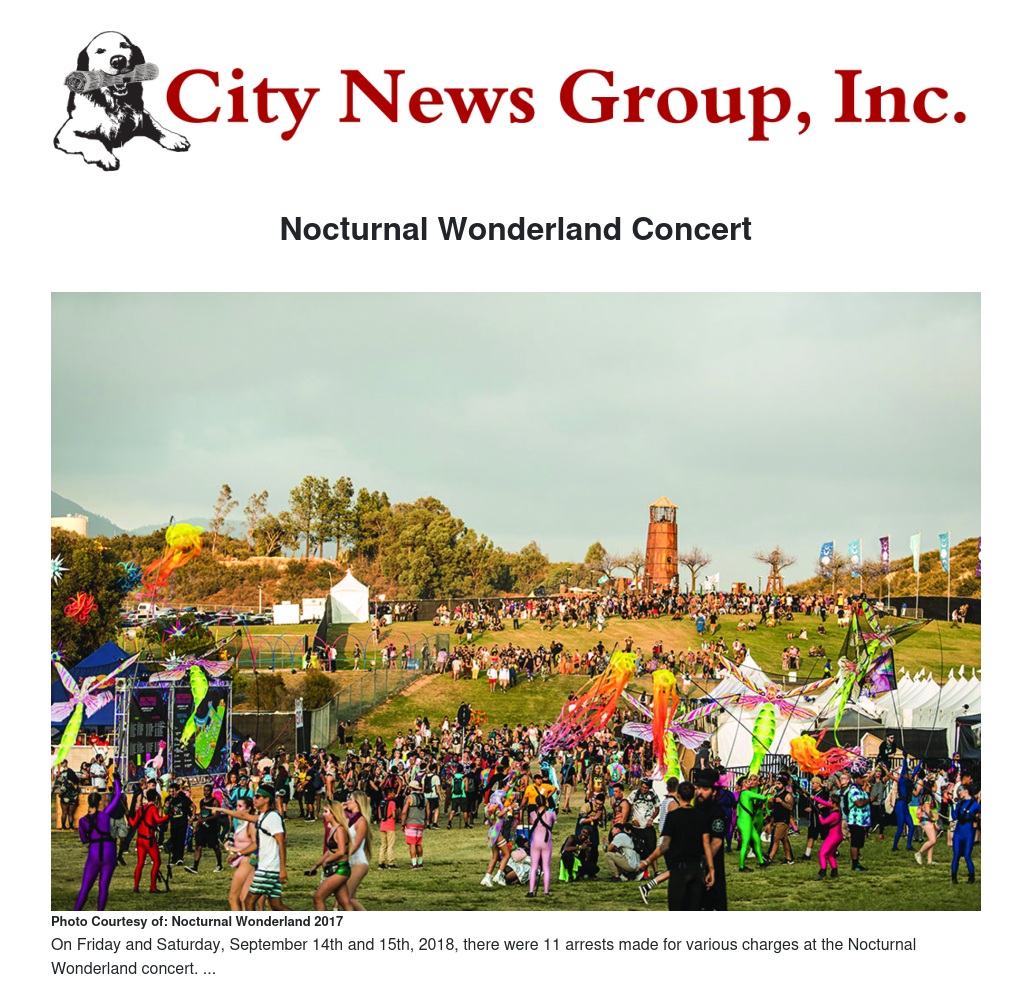 On Friday and Saturday, September 14th and 15th, 2018, the Nocturnal Wonderland concert was held at the Glen Helen Amphitheatre in Devore. Campers began camping at the regional park on Thursday before the concert. Over the two-day period, 11 arrests were made for various charges.