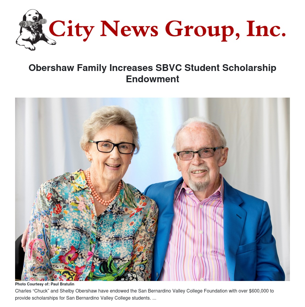 Obershaw Family Increases SBVC Student Scholarship Endowment by Paul Bratulin - City News Group, Inc.