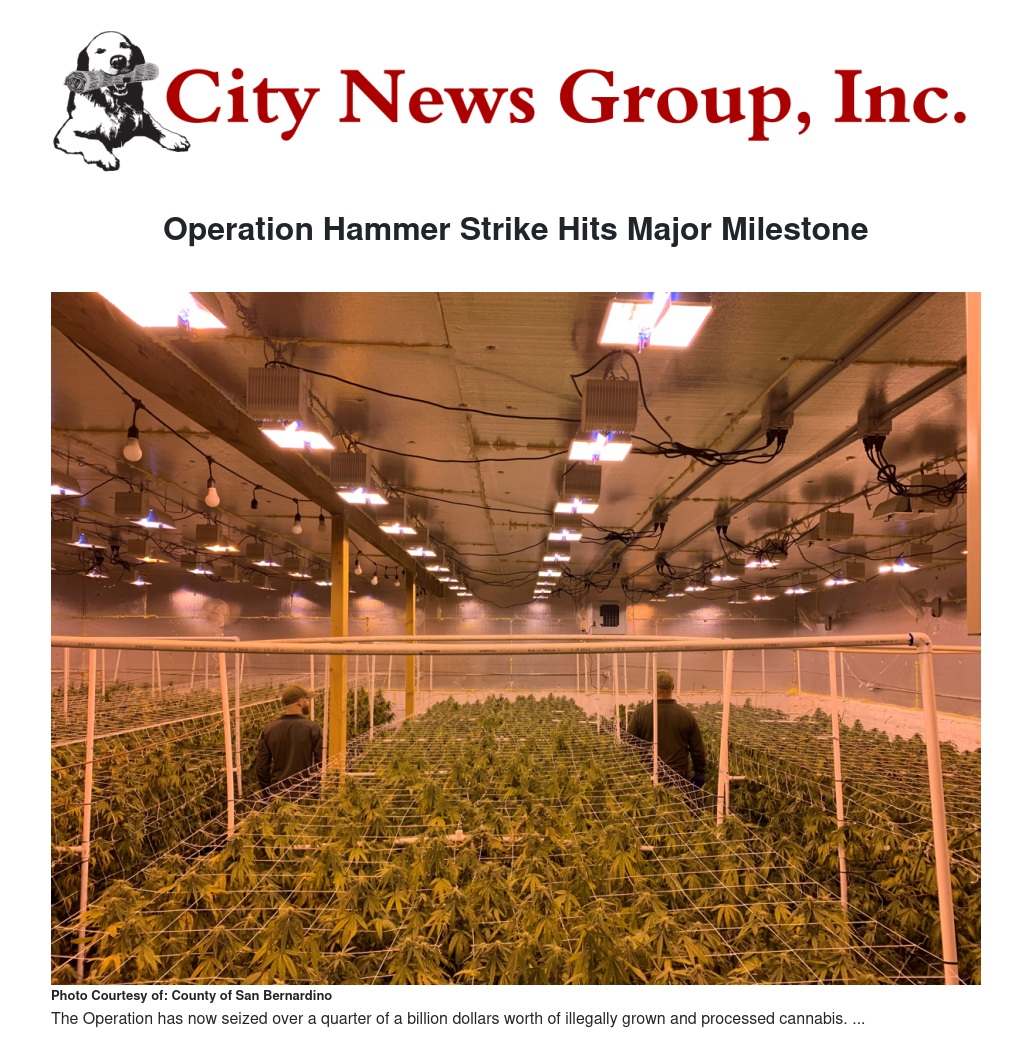 Operation Hammer Strike Hits Major Milestone by County of San Bernardino - City News Group, Inc.