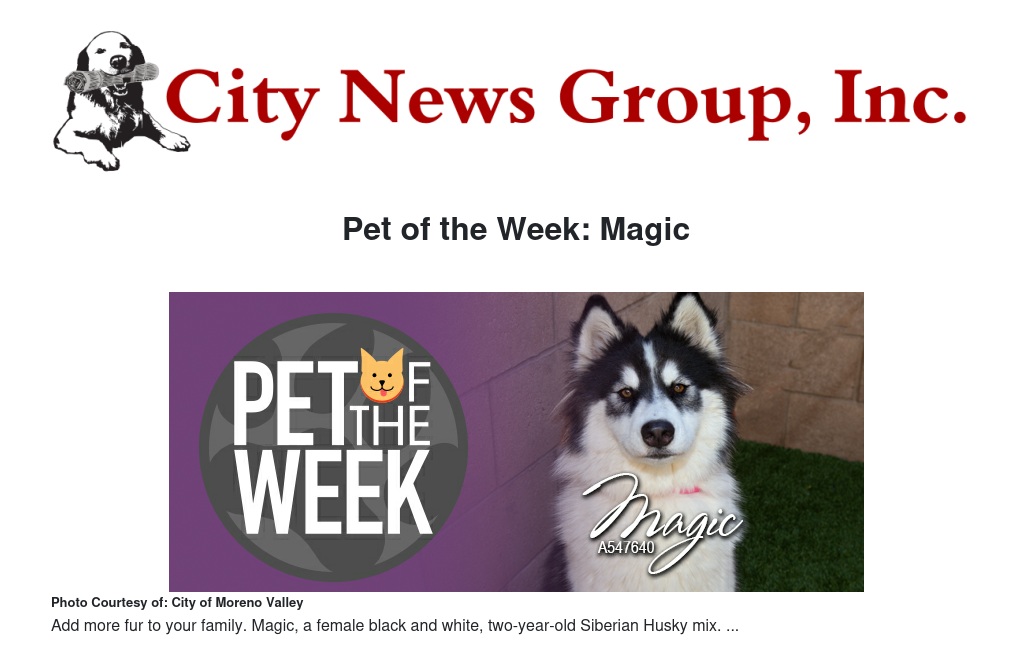 If you would like to make Magic, or any pet from the Moreno Valley Animal Shelter, part of your family, please call 951.413.3790 or visit moval.org/pets.