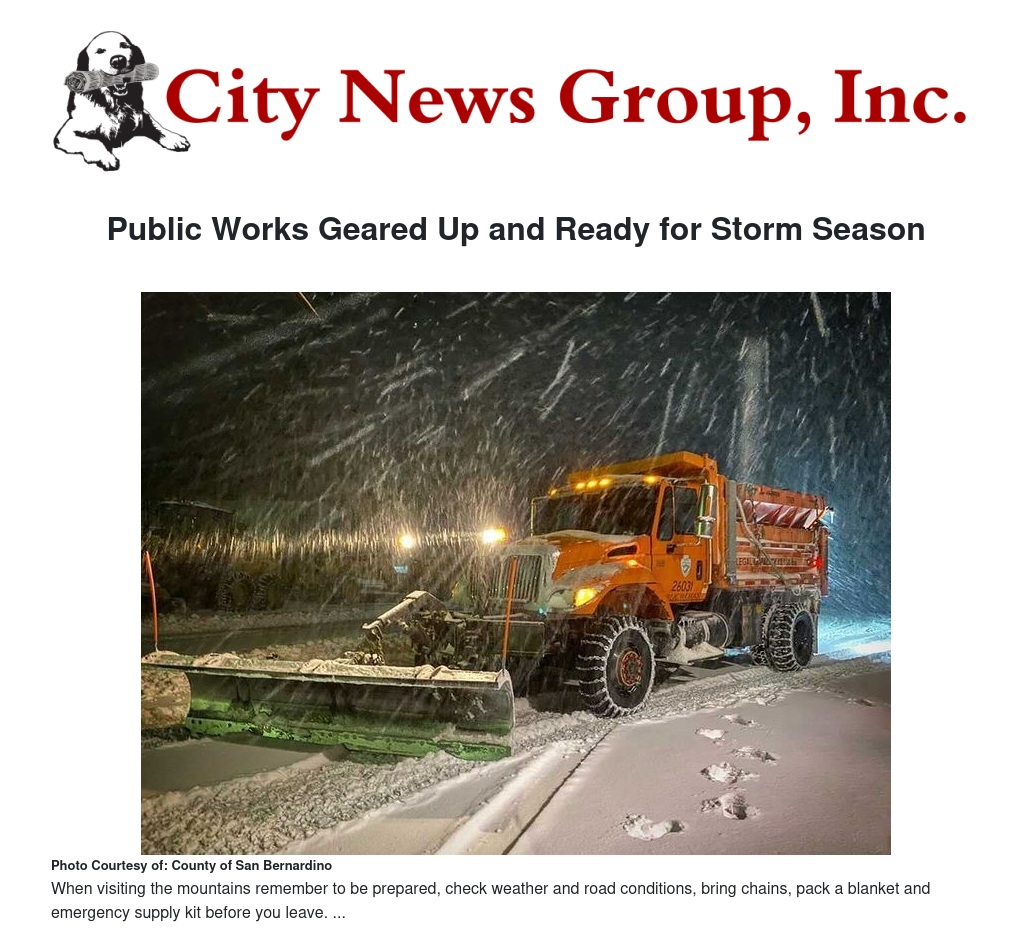 Public Works Geared Up and Ready for Storm Season by County of San Bernardino - City News Group, Inc.