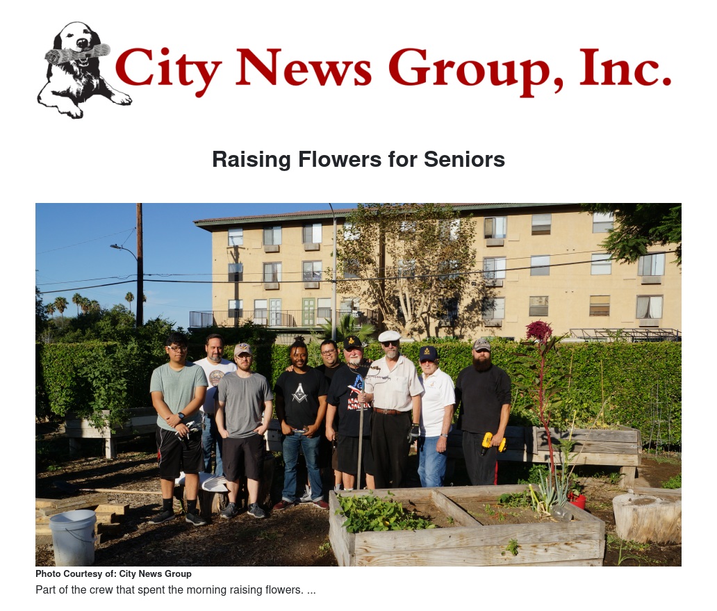 San Bernardino’s Phoenix Rising Masonic Lodge #178 arrived in the early hours of the morning to fulfill a promise they had made to the management and residents of the local, Ahepa Senior Housing Apartments. The sprawling property while well-kempt, had a section of large wooden planters that needed to be replaced with a more stable type of wood in order to better support the plants within the garden area and keep it from certain collapse -- an important job seeing as the gardens were instituted as a means of fun activity and social interaction for seniors living in the area. Thankfully, with the masons’ voluntary aid, this would prove to be quick and efficient work.