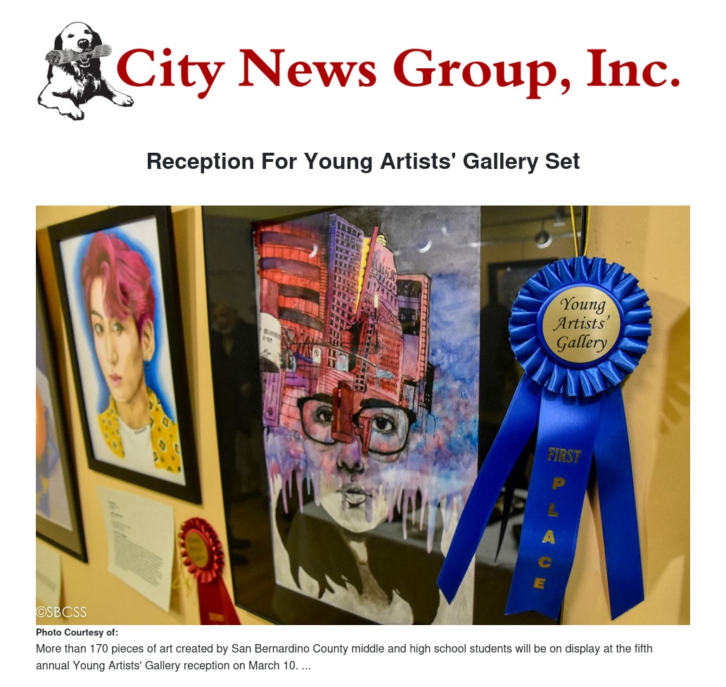 More than 170 pieces of art created by San Bernardino County middle and high school students will be on display at the fifth annual Young Artists' Gallery reception on March 10.