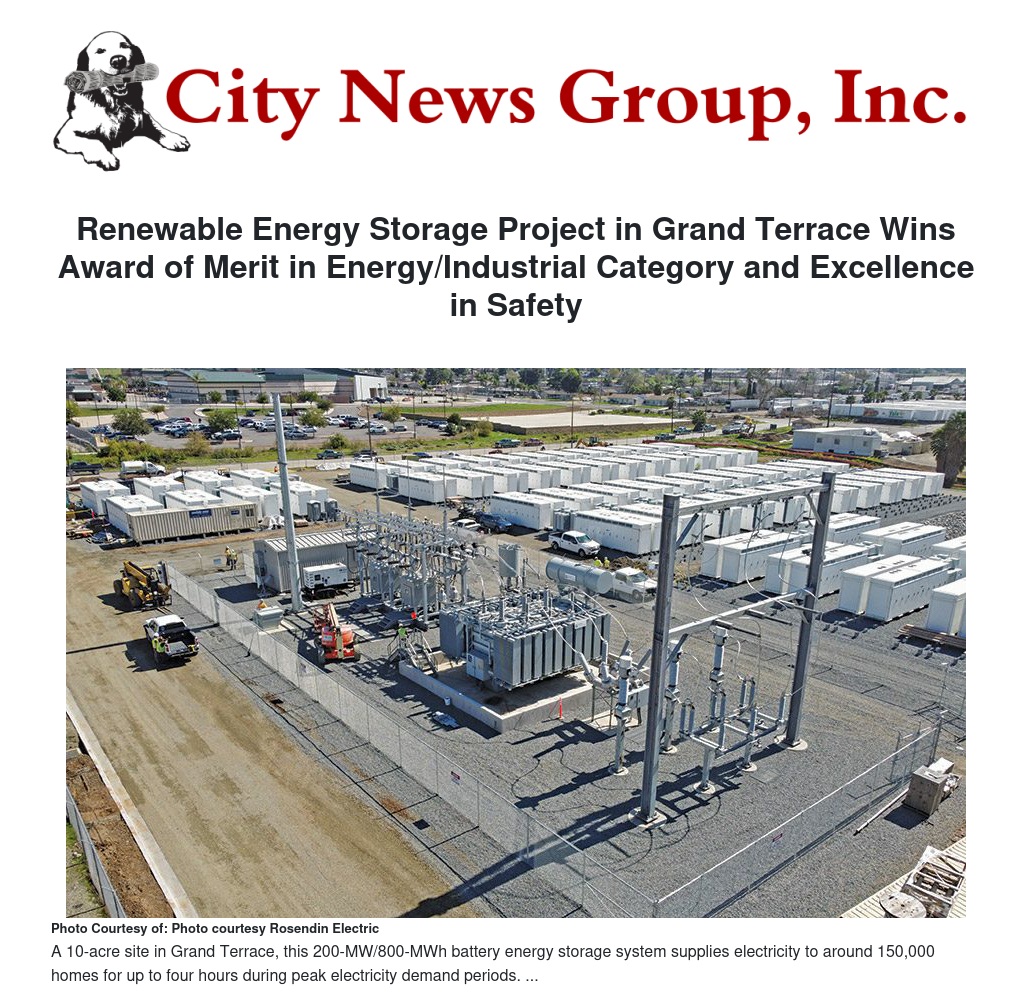 Renewable Energy Storage Project in Grand Terrace Wins Award of Merit in Energy/Industrial Category and Excellence in Safety by Eric Montgomery - City News Group, Inc.