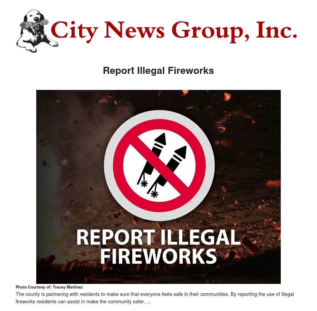 To make an anonymous report, residents may visit https://bit.ly/SBCoReportFireworks. Be sure to include the date, time, and specific location of the alleged activity. Any photos and videos of incidents will aid in the investigation of alleged violations. Photos and videos may be included in the submission of each report.