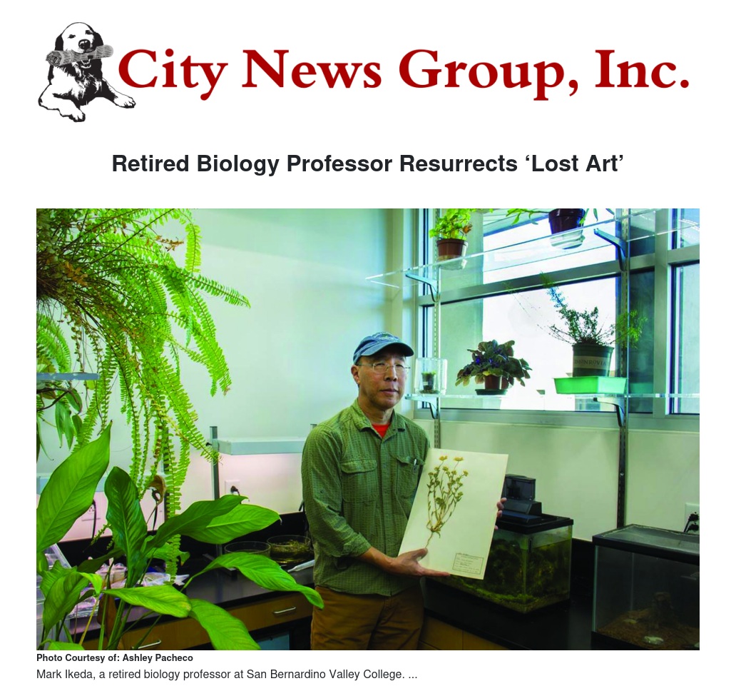 Although he is technically retired, Mark Ikeda is as busy as ever, and still connected to San Bernardino Valley College. The Professor Emeritus of Biology retired in 2014, and in the years since, has been working with current SBVC students and faculty to classify and curate a collection of thousands of plant specimens, with some dating back to the 1920s and others now extinct. Together, they have been constructing a digital database that lists each specimen's biology, taxonomy, site, and unique characteristics observed at the time of collection.