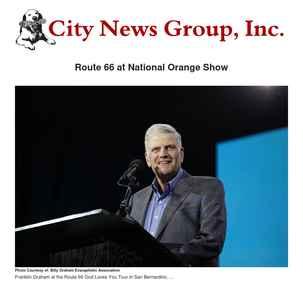 Franklin Graham, president of the Billy Graham Evangelistic Association, closed his first Route 66 God Loves You Tour on Saturday, Oct. 2 in San Bernardino after offering the message of God in several states along Route 66.