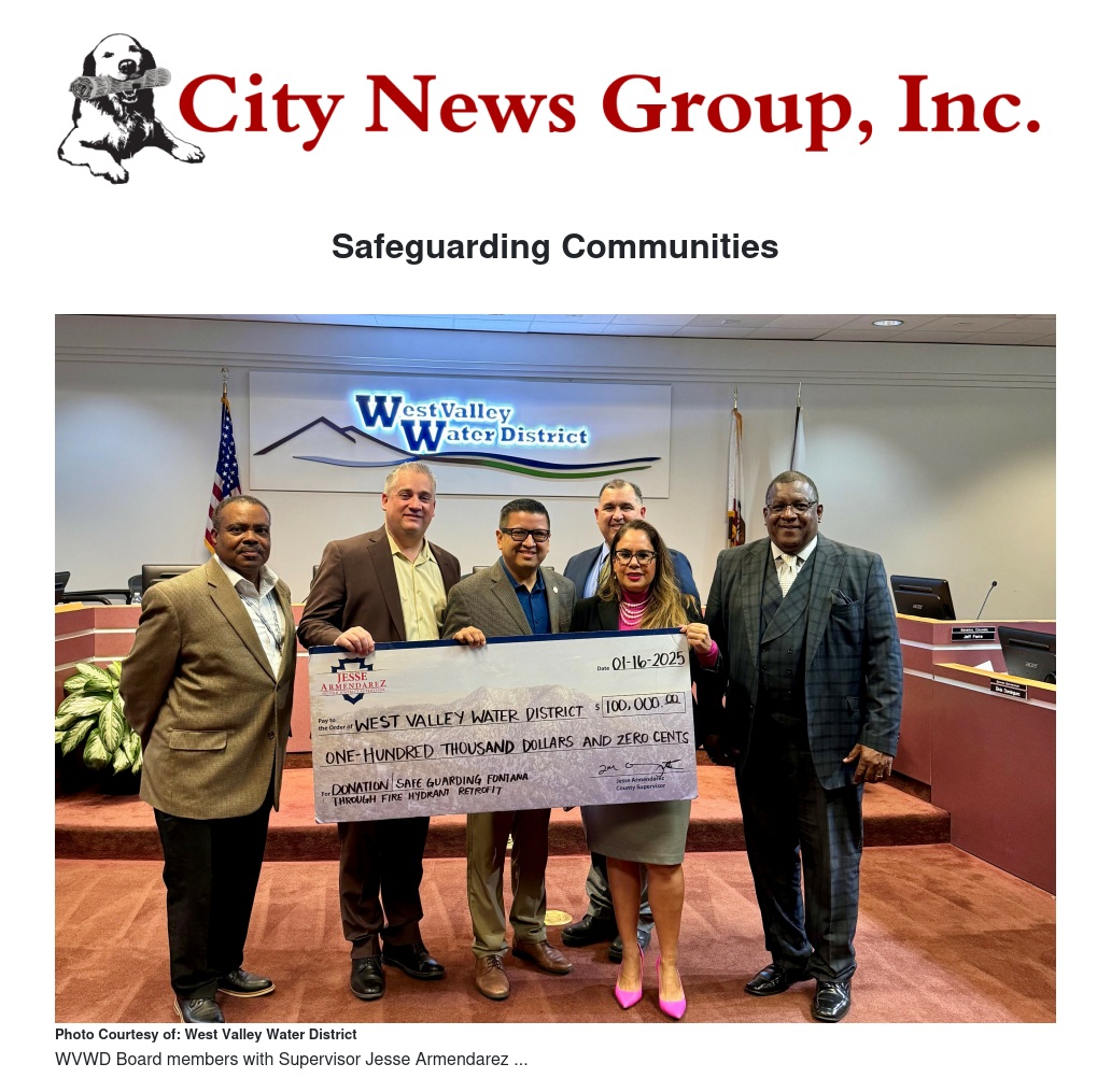 West Valley Water District (WVWD), in collaboration with San Bernardino County Supervisor Jesse Armendarez, is taking proactive steps to install critical fire suppression infrastructure, ensuring their shared communities' needs are met during emergencies.