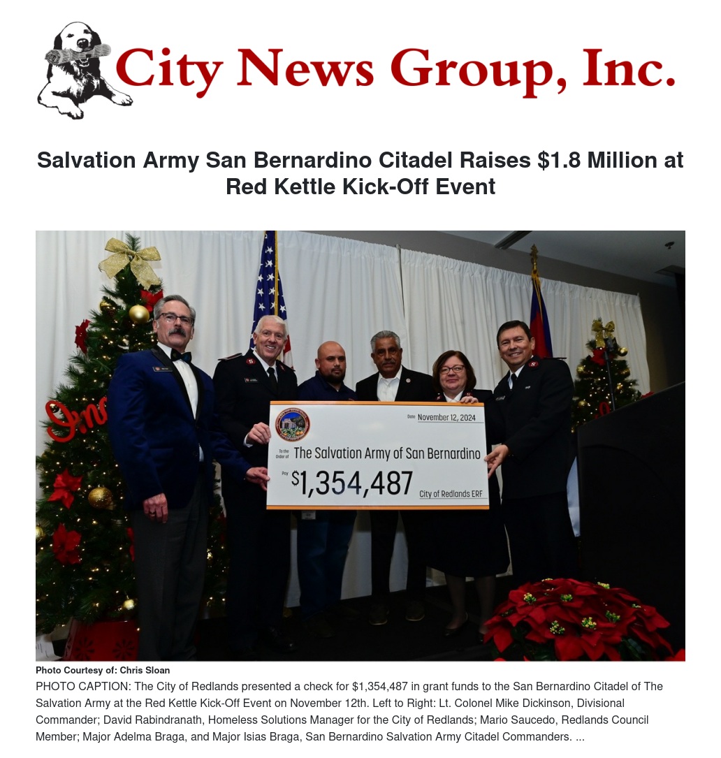 Salvation Army San Bernardino Citadel Raises $1.8 Million at Red Kettle Kick-Off Event by Dr.Greg Zerovnik - City News Group, Inc.