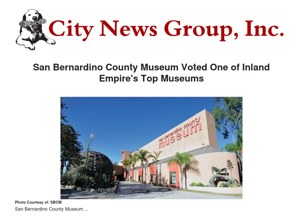 San Bernardino County Museum Voted One of Inland Empire's Top Museums by San Bernardino County Museum - City News Group, Inc.