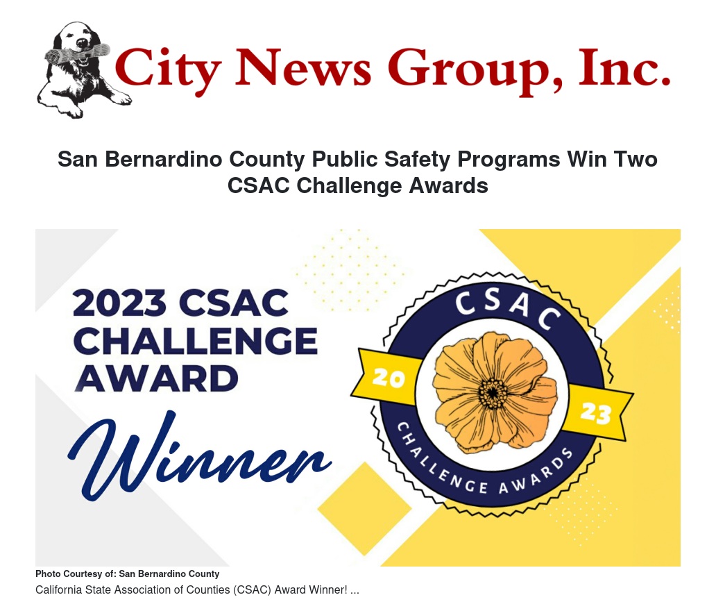 San Bernardino County Public Safety Programs Win Two CSAC Challenge Awards by San Bernardino County - City News Group, Inc.