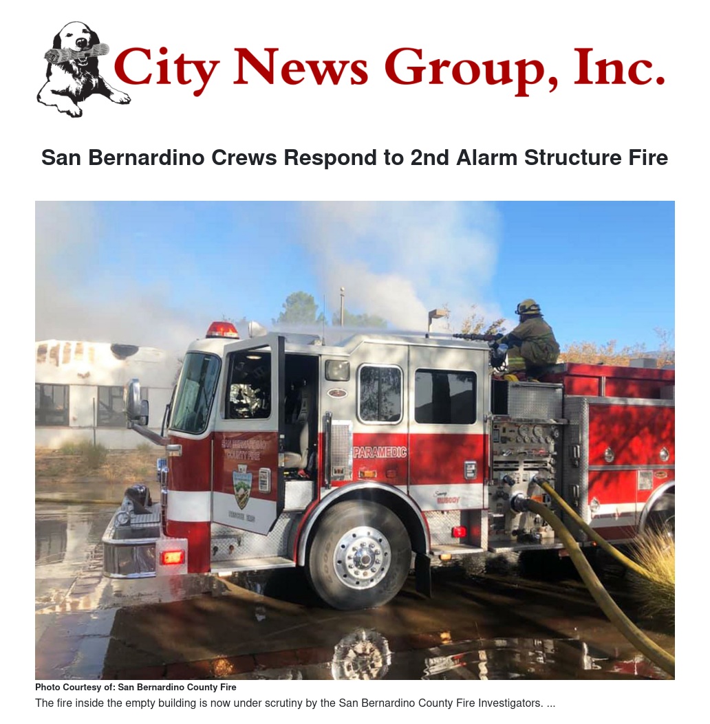 The fire was knocked down in approximately 80 minutes. After completing a primary and secondary search, no victims were found. The fire is under investigation by San Bernardino County Fire Investigators. The building, vacant at the time of the fire sustained heavy damage. No cause or damage estimates were available at the time of the release.