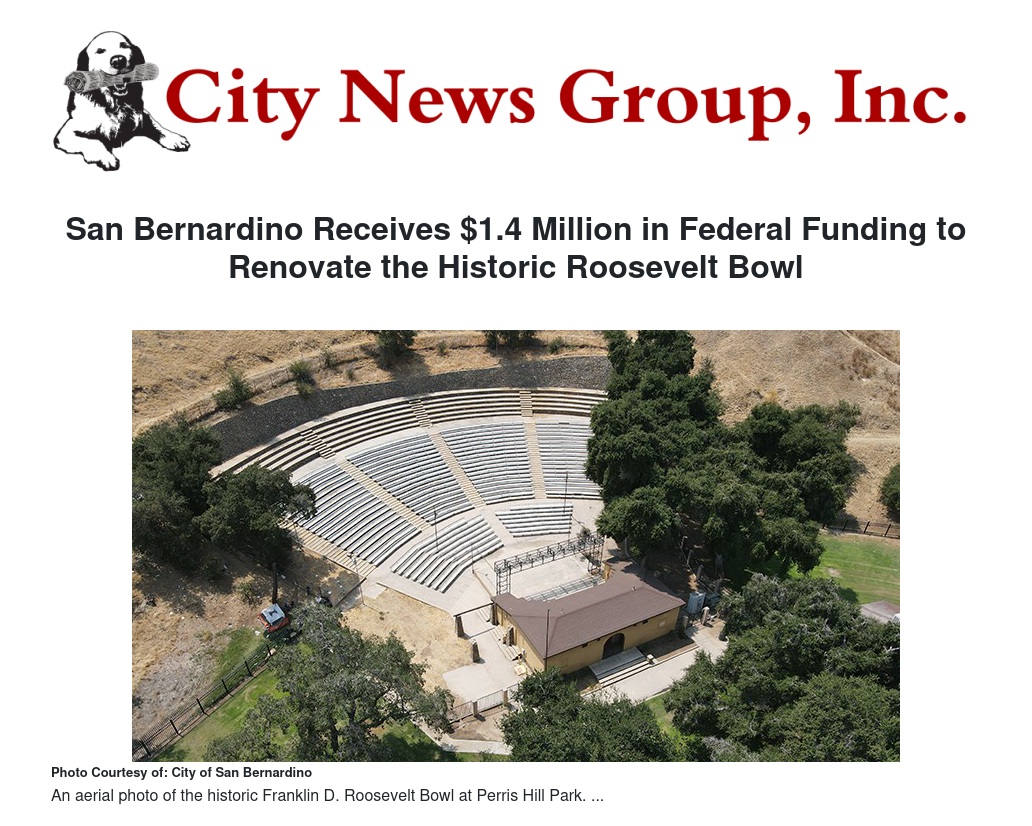 San Bernardino Receives $1.4 Million in Federal Funding to Renovate the Historic Roosevelt Bowl by Jeff Kraus - City News Group, Inc.