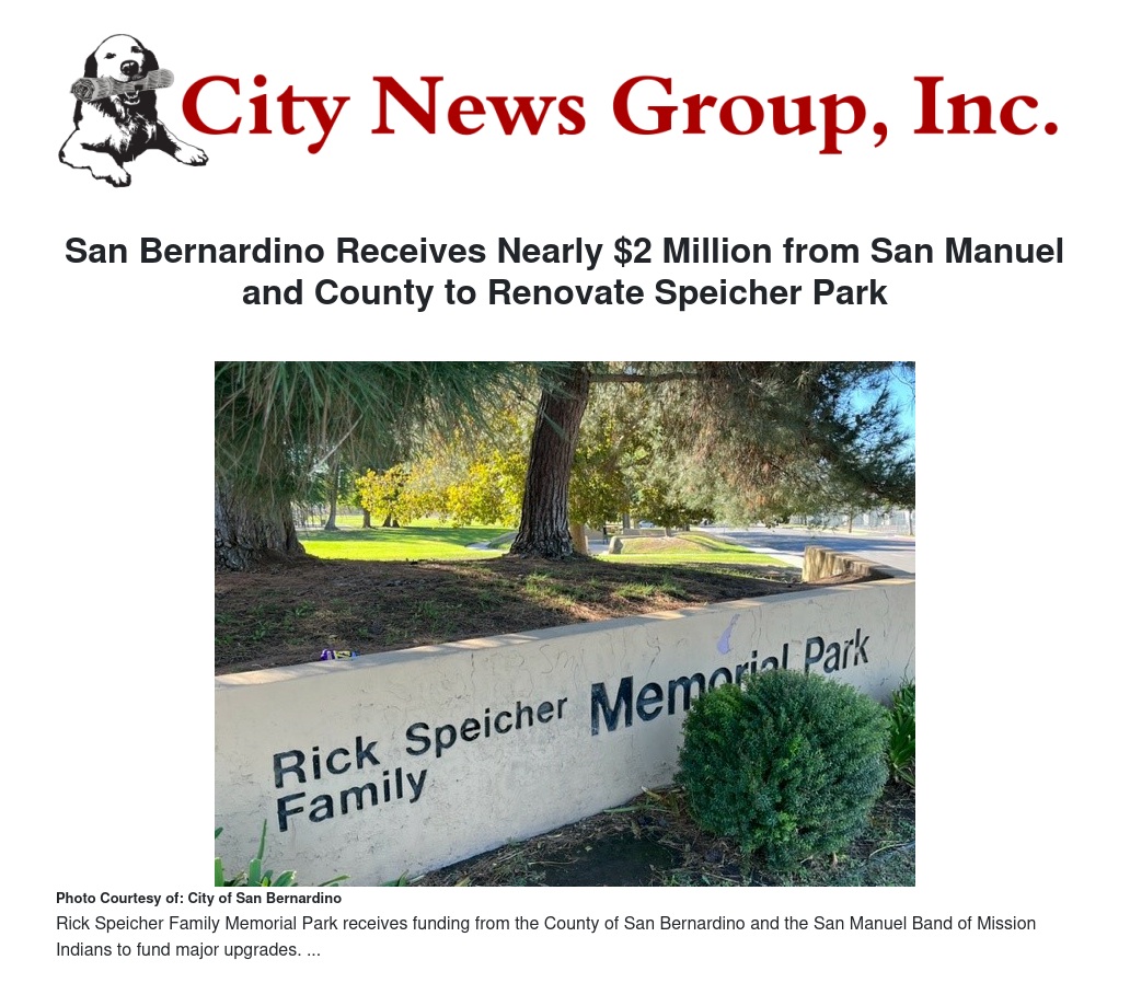 San Bernardino Receives Nearly $2 Million from San Manuel and County to Renovate Speicher Park by Vivian Johnson - City News Group, Inc.