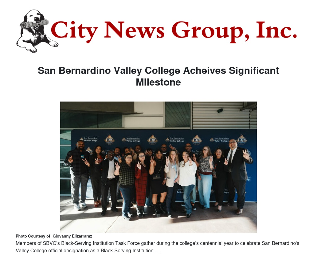 San Bernardino Valley College (SBVC) has been officially designated as a Black-Serving Institution (BSI) by the Black-Serving Institution Governing Board, a national advisory body whose work is administered through the CSU Statewide Central Office for the Advancement of Black Student Success.
