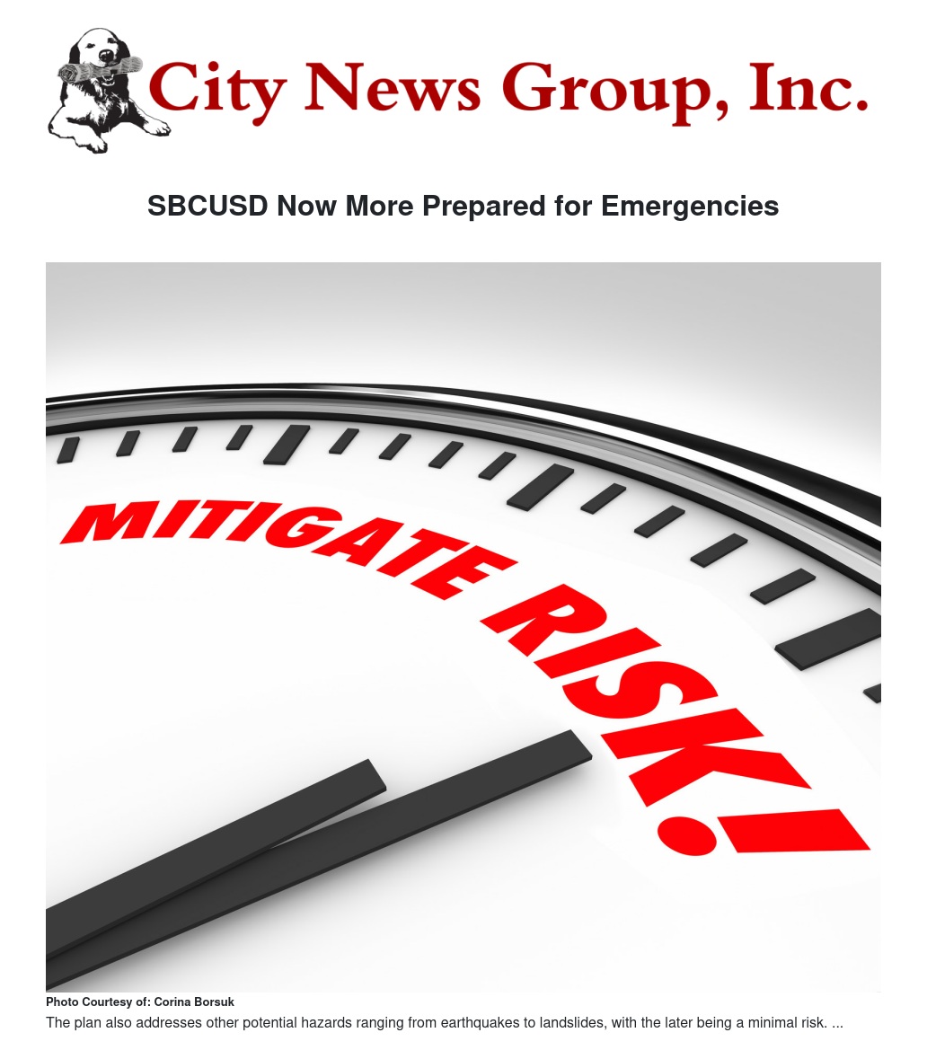 SBCUSD Now More Prepared for Emergencies by Corina Borsuk - City News Group, Inc.