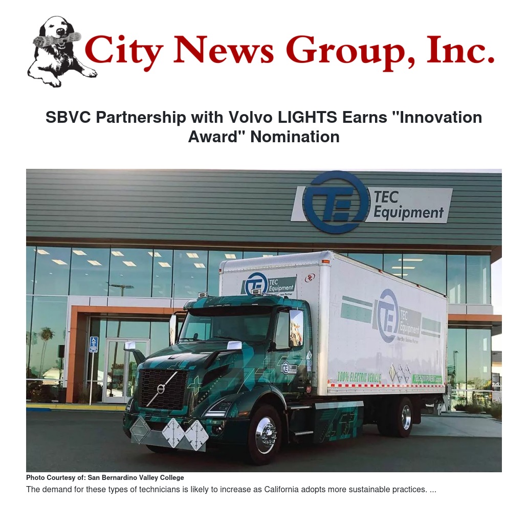 SBVC Partnership with Volvo LIGHTS Earns "Innovation Award" Nomination by San Bernardino Valley College - City News Group, Inc.