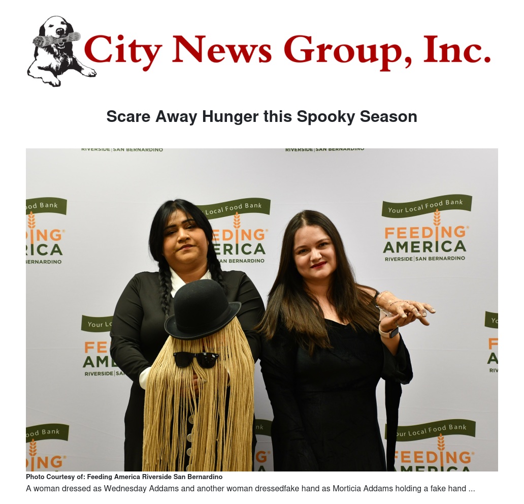 Feeding America Riverside | San Bernardino (FARSB) is raising awareness about hunger and food insecurity in the IE with their “Scare Away Hunger” campaign through the month of October. This aims to boost funds, food donations, and raise awareness of neighbors in need during the fall season, when hunger is not always top of mind.