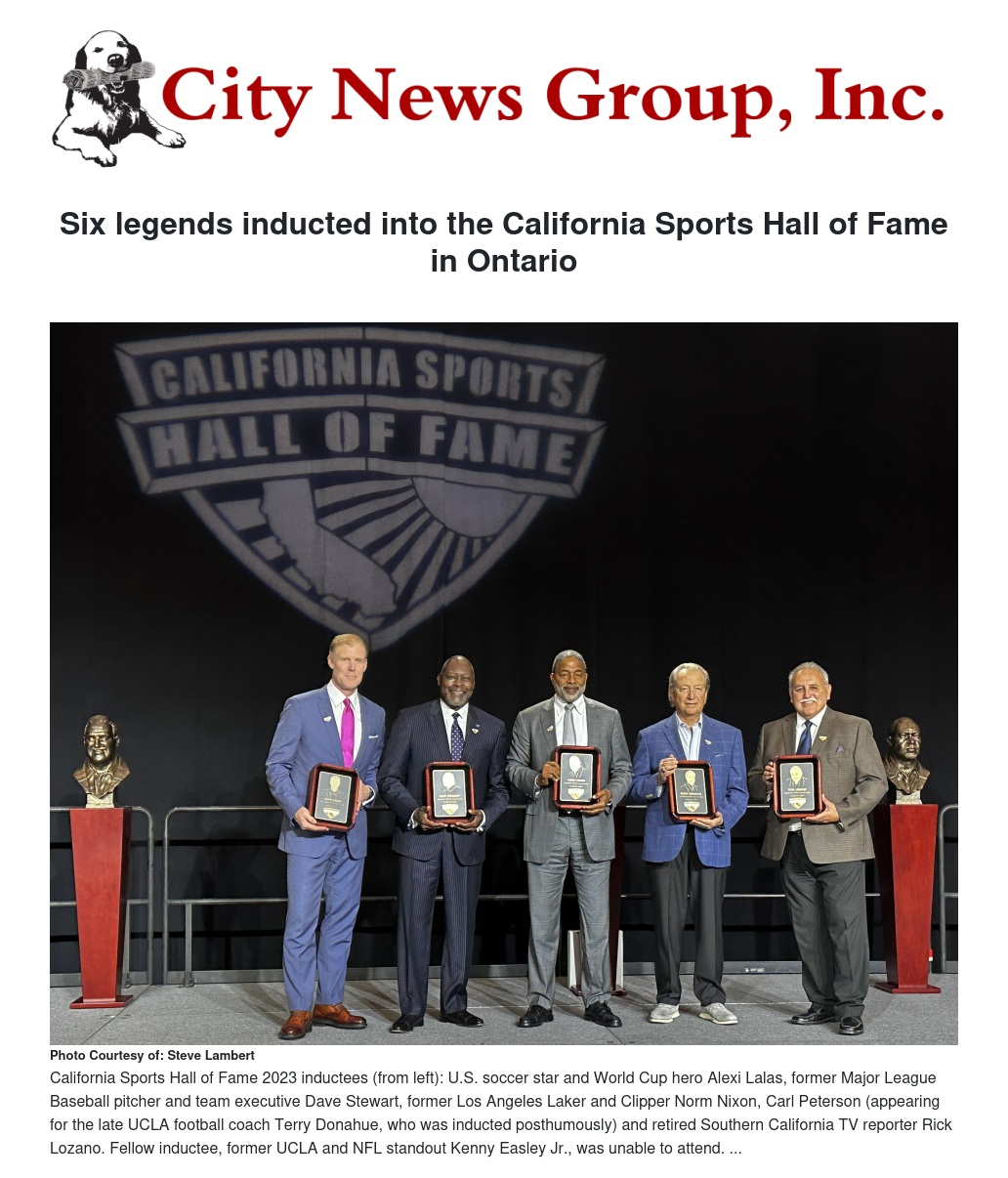 Five legends of the field and a renowned local TV broadcaster were inducted into the California Sports Hall of Fame during a gala event at the Ontario Convention Center Sunday night, June 25.