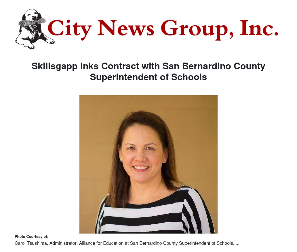 Skillsgapp Inks Contract with San Bernardino County Superintendent of Schools by Barbara McMurray - City News Group, Inc.