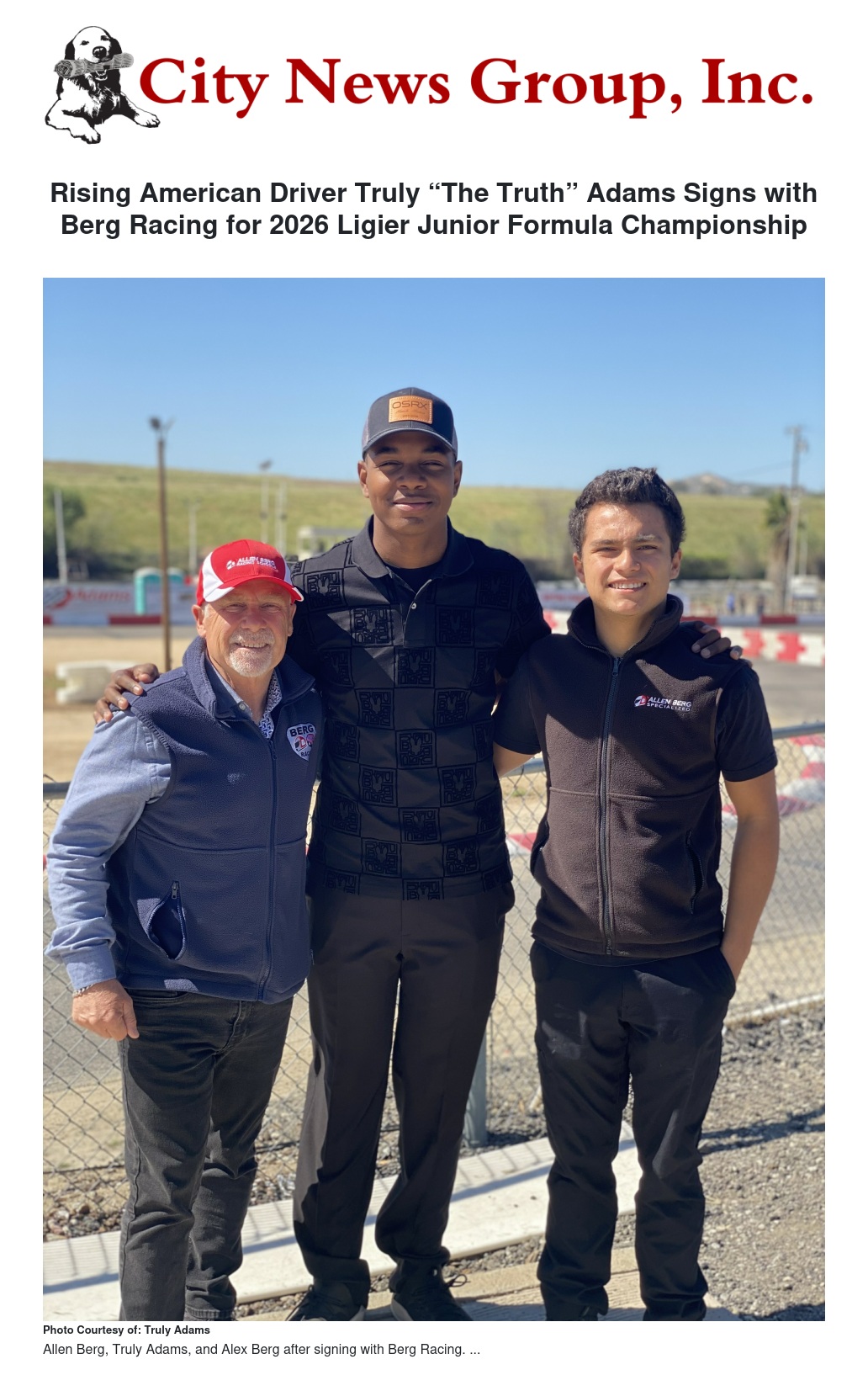 Allen Berg, Truly Adams, and Alex Berg after signing with Berg Racing.