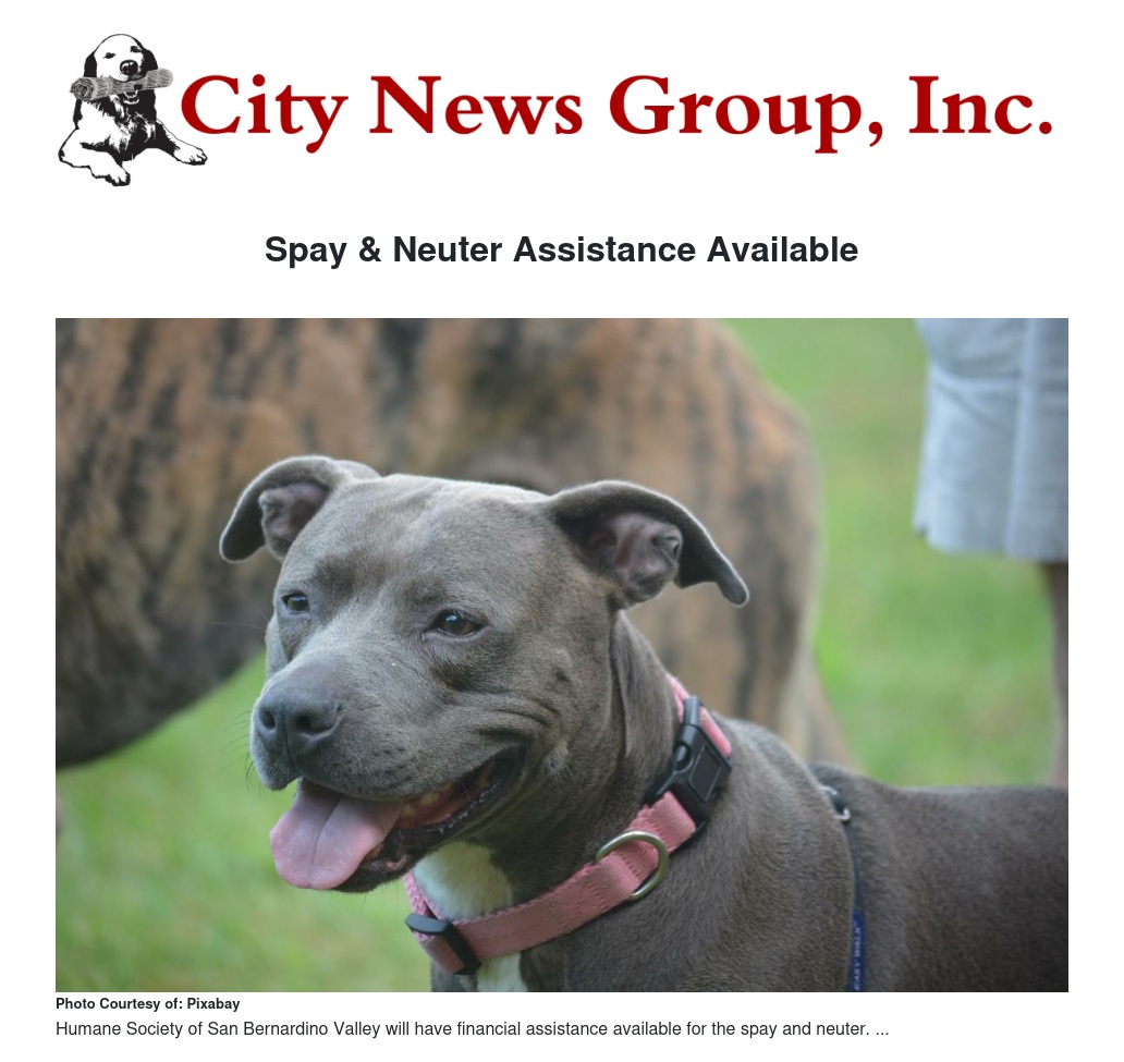 Thanks to a generous extension grant from the Jason Debus Heigl Foundation and The Coalition for Pets and Public Safety, the Humane Society of San Bernardino Valley will have financial assistance available for the spay and neuter of Pit Bulls, Pit Bull mixes, Chihuahuas and Chihuahua mixes. These surgeries will be offered for only $20 while funding lasts. In cases where both male and female pit bulls/Chihuahuas come in for surgery from the same household, the $20 co-pay will be waived.