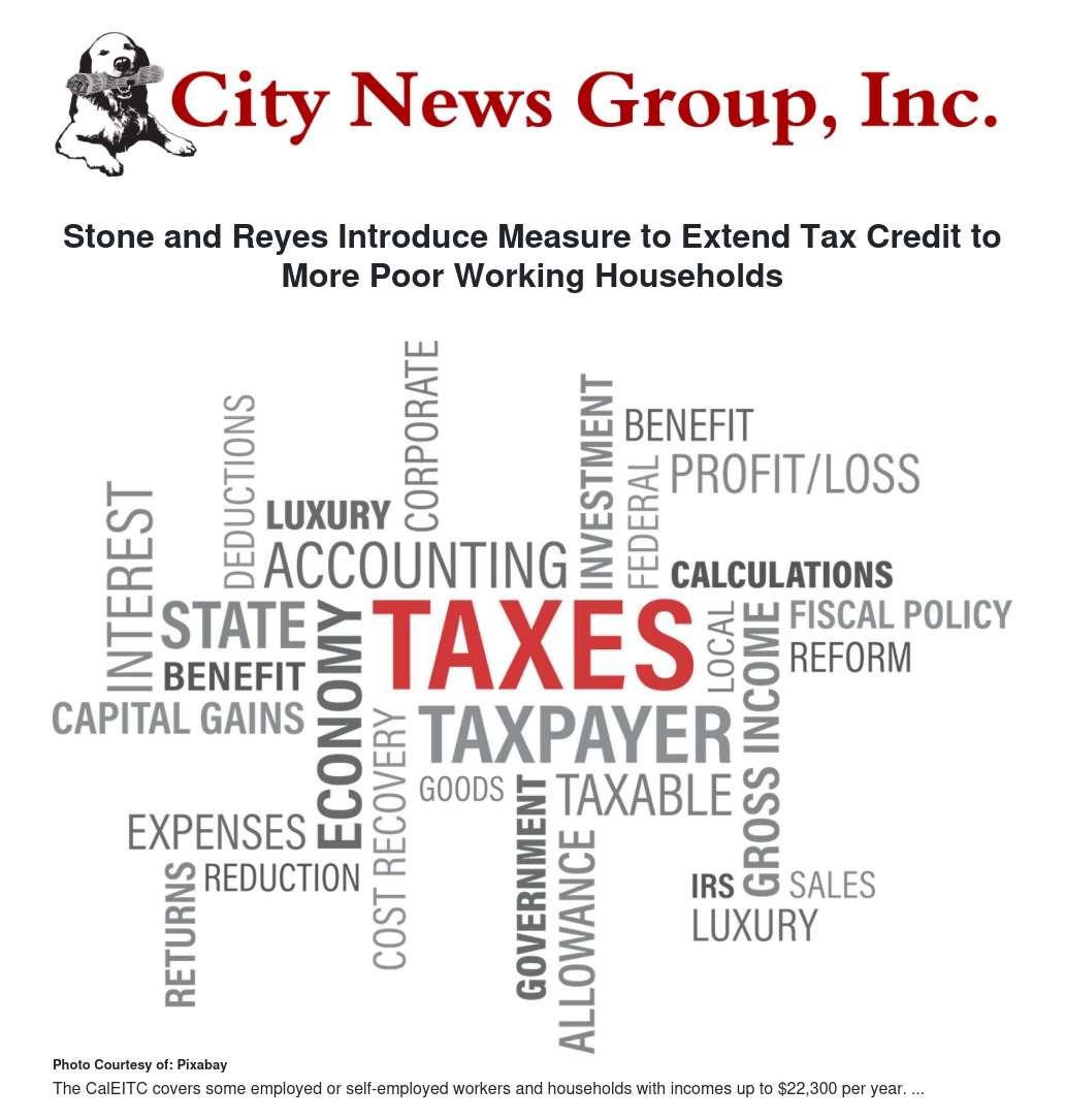 Assemblymembers Mark Stone (D-Monterey Bay) and Eloise Gómez Reyes (D-San Bernardino) have jointly introduced Assembly Bill 2066 to reduce poverty amongst working Californians and to boost local economies. The measure extends the California Earned Income Tax Credit (CalEITC) to families and individuals currently ineligible for the credit, including low-income youth, seniors, and immigrants without Social Security Numbers.