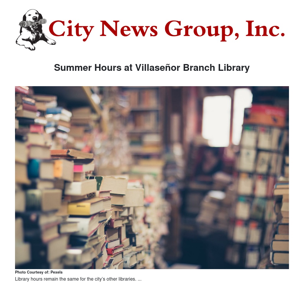 Public service hours at the Villaseñor Branch Library of the San Bernardino Public Library will shift to “summer hours” beginning Monday, March 12th with the return of Daylight Savings Time.