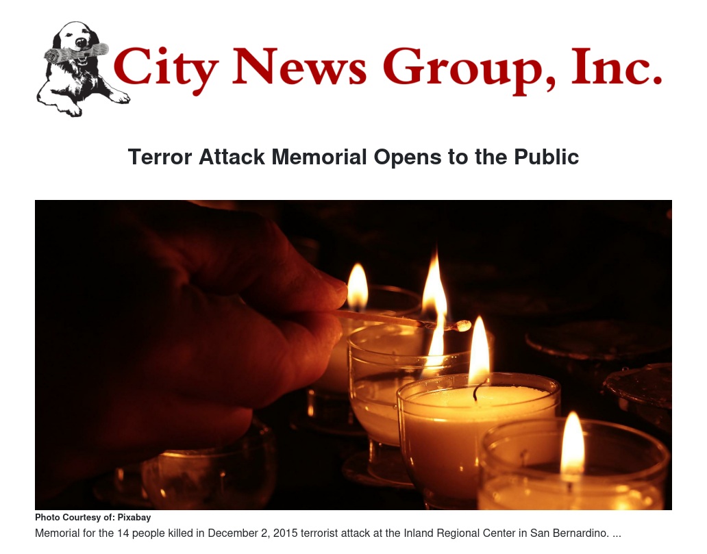 “On December 2nd, 2015 our County and country as a whole suffered loss at the hands of those who attempted to tear us down through hatred,” said Fifth District Supervisor Joe Baca, Jr. “It did not work, and it never will. This memorial is a reminder that San Bernardino’s foundation is strong enough to get through pain and tragedy such as this one. We will never forget the innocent lives that were taken this day and will always hold them dearly in our hearts. This memorial will keep their memory alive and serve as a reminder that San Bernardino is strong enough to grow and move forward after such detrimental loss. We are SB Strong and will always remain that way.”