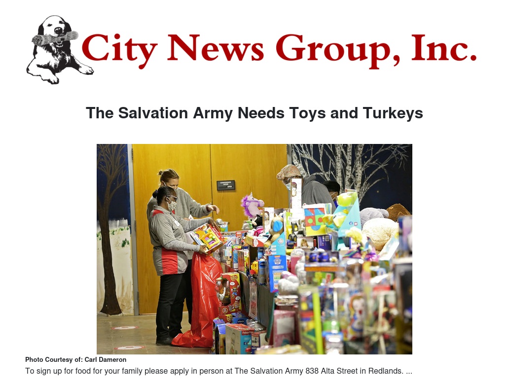The Salvation Army Needs Toys and Turkeys by Carl Dameron - City News Group, Inc.