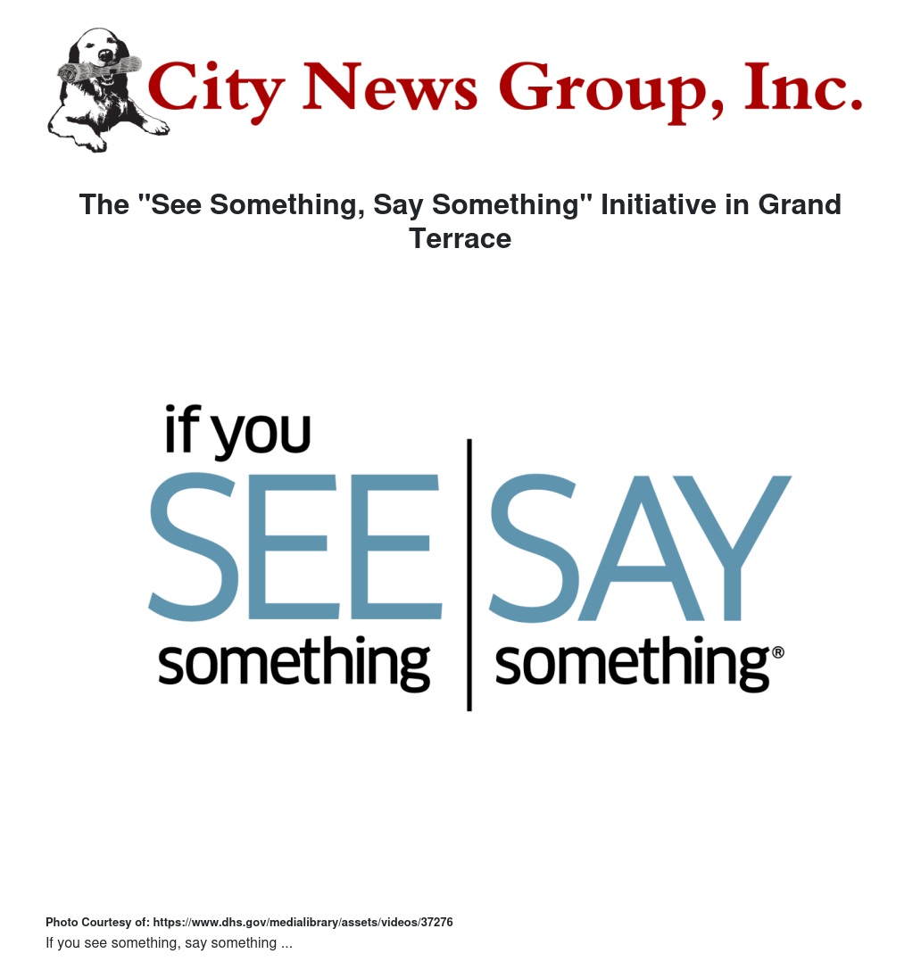 The "See Something, Say Something" Initiative in Grand Terrace by Stella Pierce - City News Group, Inc.
