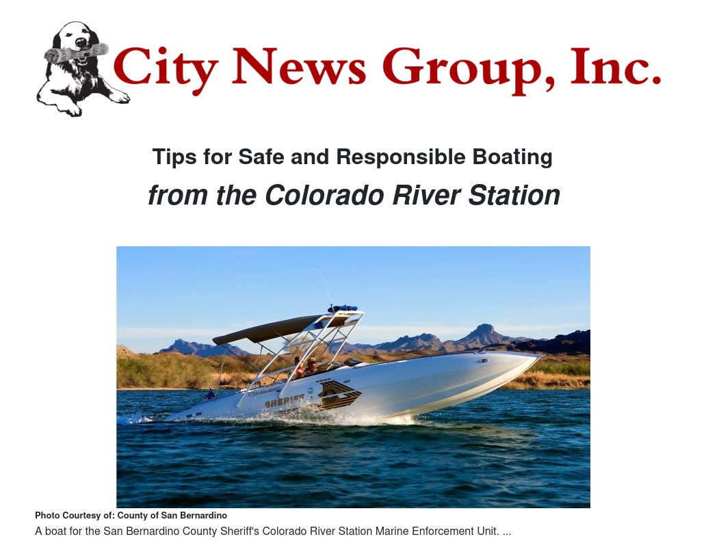 Tips for Safe and Responsible Boating by County of San Bernardino - City News Group, Inc.