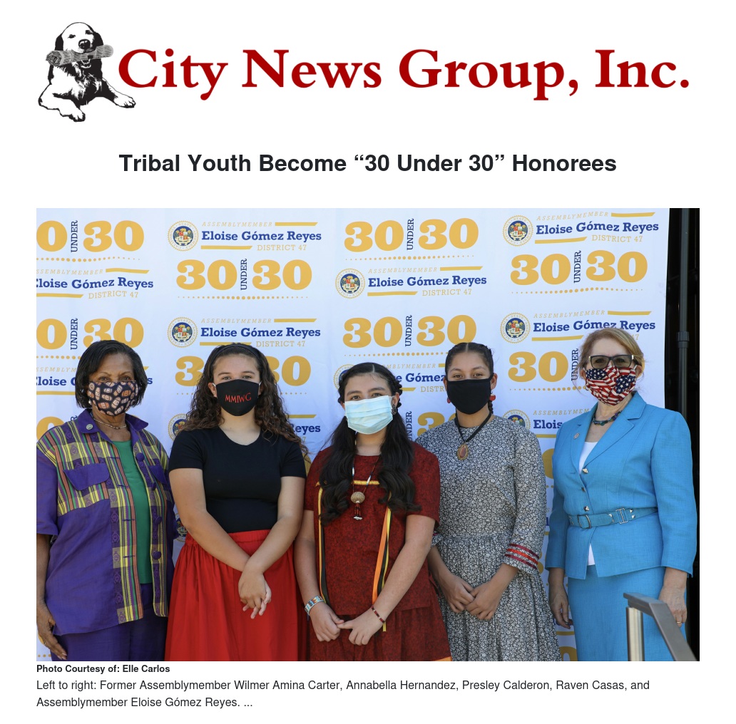 Four young leaders from the San Manuel Band of Mission Indians were honored with “30 Under 30” awards presented by Assemblymember Eloise Gómez Reyes.
