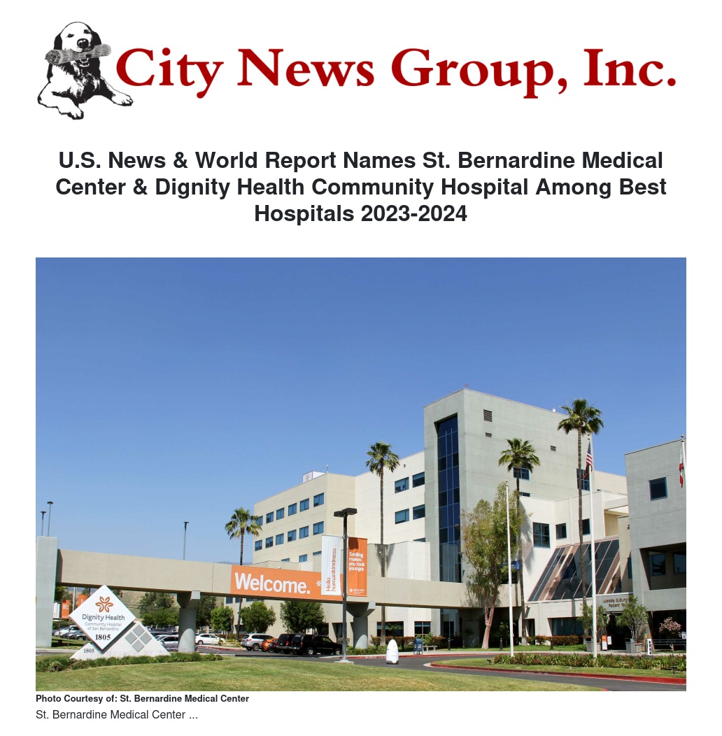 U.S. News & World Report Names St. Bernardine Medical Center & Dignity Health Community Hospital Among Best Hospitals 2023-2024 by Christina Zicklin - City News Group, Inc.